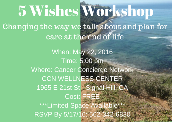 Your donation is greatly appreciated 1965 E. 21st Street Signal Hill, CA 90755 (562) 342-6830 Home ABOUT CCN Founder CCN Board Members Collaborative Partners WHAT WE DO Membership Educational Programs Get Involved RETREATS Calendar PROVIDERS Peacemaker Ministries Healing Touch MEDIA Videos News DONATE Five Wishes © 2019 Cancer Concierge Network. All rights reserved FollowFollowFollow